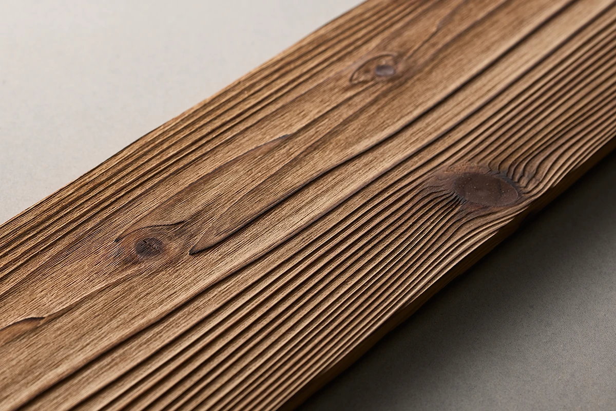 The relief-worked burnished cedar board improves durability and corrosion resistance, and the grain of the wood stands out and the beauty of the burnished finish is enhanced.