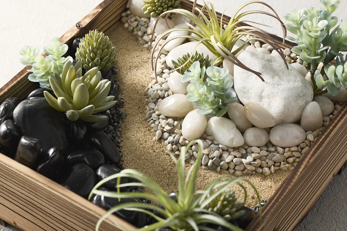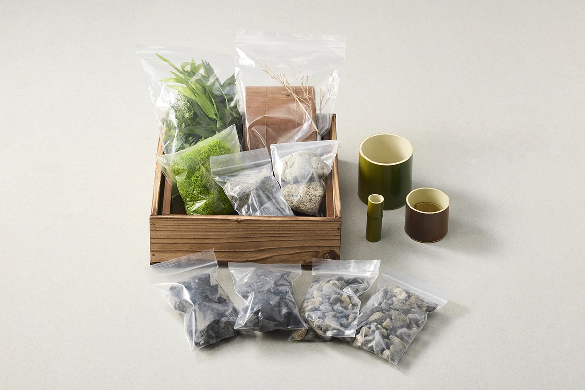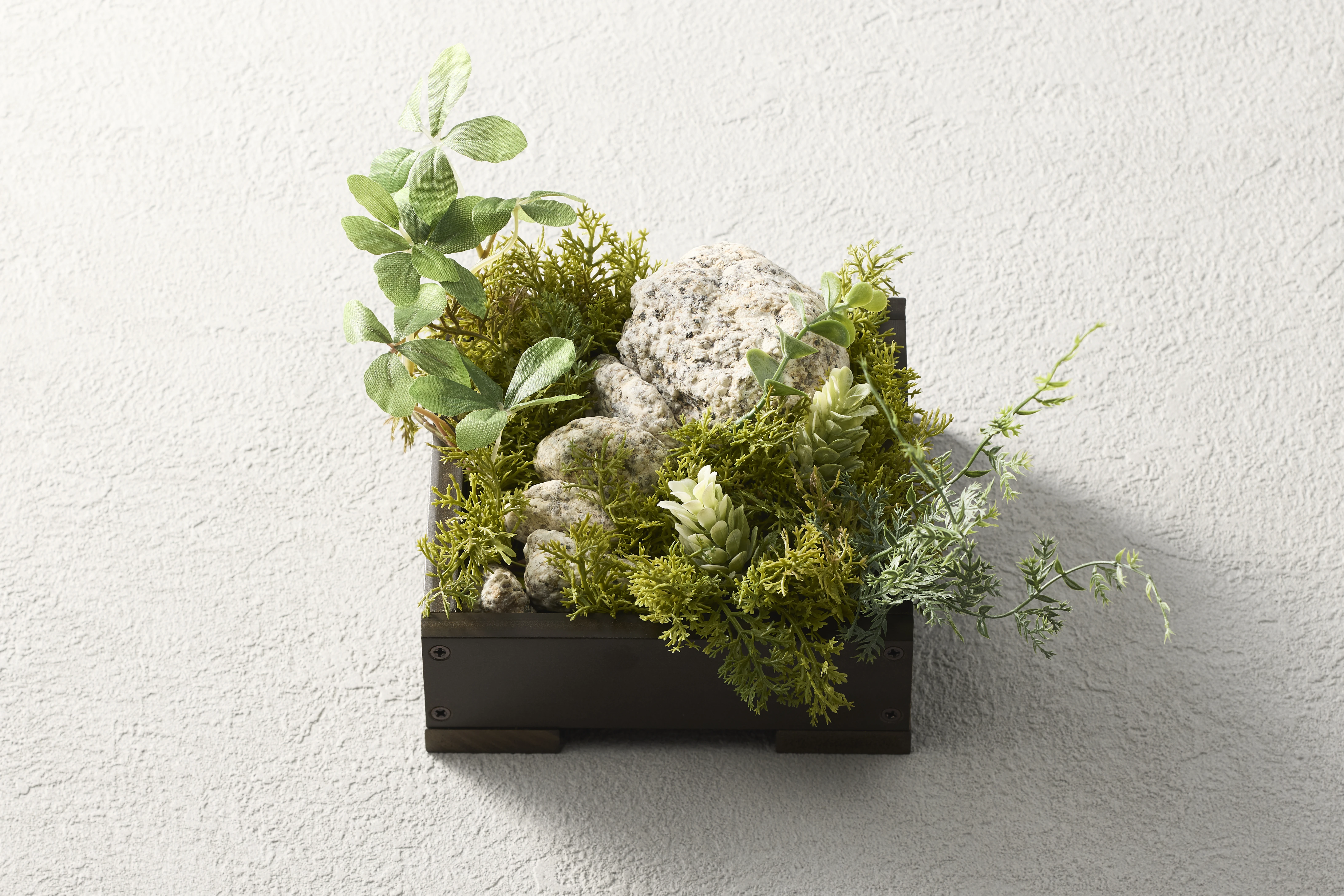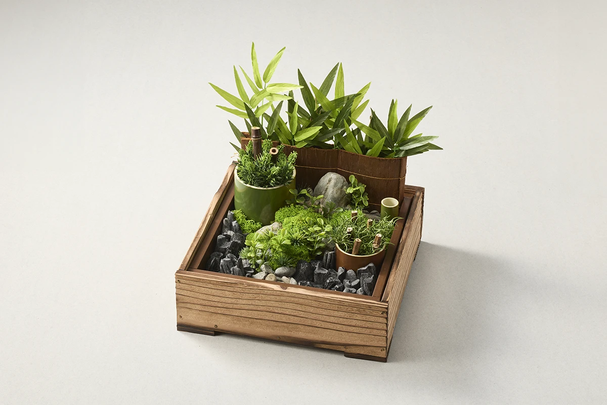 J.Makeの箱庭は、実際の庭づくりで使用する素材を詰め込んだ箱庭です。